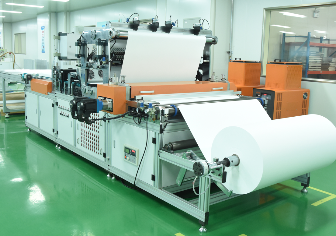公司購進(jìn)韓國三星全自動無隔板空氣過濾器折紙生產(chǎn)線,確保產(chǎn)品質(zhì)量符合GB/T13554-2020《高效空氣過濾器》、GB/T14295-2019《空氣過濾器》。該機(jī)器1、采用機(jī)、電、氣一體化全自動控制,生產(chǎn)效率高,運行穩(wěn)定可靠;2、操作盤采用12寸以上電腦控制界面,清晰、直觀、操作方便;3、上料用氣脹軸,并有張力制動系統(tǒng),可自動控制來料的張力;4、機(jī)器帶有分切修邊裝置;5、機(jī)器折高在控制界面上任意調(diào)節(jié),無需更換滾筒,伺服控制系統(tǒng)可保證折紙的平整度;6、涂膠的連續(xù)、斷續(xù)、雙面、單面、自動、手動、交叉等七項功能可方便選擇;7、每一個膠嘴有一個獨立開關(guān),可以在控制界面上自由開關(guān);8、系統(tǒng)速度通過電腦能自動匹配,可方便選擇;9、收波機(jī)構(gòu)折高調(diào)節(jié)及前后移動,調(diào)整方便可靠;10、輸送機(jī)構(gòu)可通過電腦調(diào)節(jié)使輸送速度與系統(tǒng)同步;11、使用日本松下的伺服馬達(dá)傳輸系統(tǒng)保證折出來的紙會非常的平;12、膠機(jī)的流量和折紙的速度是成正比的,要求折紙速度增加時,膠水的流量也會一起增加,不用人為再去控制膠量的大?。?3、要求在不同的生產(chǎn)速度下,膠水的干濕程度可以通過操作系統(tǒng)來控制;14、折紙與輸送過程具有同步性。